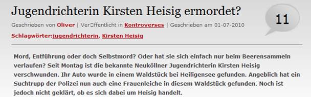 (*) 6. Juni 2011 (Nachtrag): Eilmeldung: Richterin Heisig vermisst